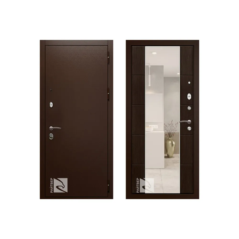 Входная металлическая дверь Райтвер Президент Меланж Темный с зеркалом